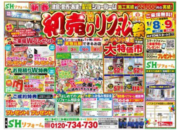 初売りリフォーム祭を開催いたします! ご来場は無料! ぜひ、お越しくださいませ! ご来場特典としてアンケートにご記入いただいた方に 「BOXティッシュ」をプレゼント! さらに、今年最初の運試し? サイコロの出た目の数のカップラーメンを どどんとプレゼント。 お見積りをご依頼いただいた方には、 福袋(何が入っているかお楽しみ) + 運試し大抽選会(ご家族様1回限り) を開催いたします! ご成約特典 では、 ★お風呂のリフォームご成約で、話題の、リファ ファインバブルSプレゼント ★50万円以上のキッチンリフォームご成約で、食洗器またはリフォーム券プレゼント まだまだ、ありますよ。お子さま特典では、ジュース1本プレゼント! そして!新春に水廻り設備を新しくしようかなとお考えの皆さまにお知らせです! なんと!2日間限りの大特価市をご用意しております! 台数に限りがございますので、お早めにご相談ください♪ =============================== キッチン・トイレ・洗面台・お風呂などの水廻りのリフォームから、 LDKリフォーム、給湯器の交換まで、 さまざまなリフォームを行っております。 リフォームのことで気になることがございましたら、 ぜひお越しくださいませ。 縁起の良いすえひろの「 八 」 八っの企画で スタッフ一同心よりお待ちしております。 ============================== 日時:2022年1月8日(土)・1月9日(日) 10:00~17:00 場所:SHリフォーム 木田ショールーム あま市木田東新赤坪43-1 ご来場:無料 駐車場:あり ===================== イベントチラシはこちら↓