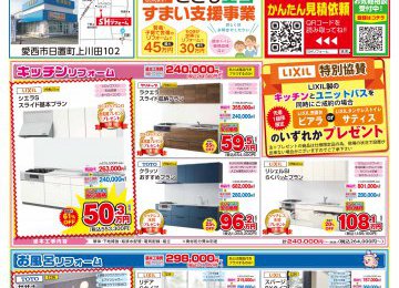 津島市・愛西市・あま市のリフォームは SHリフォームへ 皆さま、いつもご利用ありがとうございます。 2022年4月~2022年7月末迄のチラシを掲載いたします。 ========================== SHリフォーム、佐藤配管は津島市・愛西市・あま市の水まわり専門店!! 小さな修理・取り替えも喜んでお受けします!! キッチンやトイレ、お風呂に洗面台、 各種給湯器など器具の取り替えは SHリフォームにお任せください!! ========================== 対応エリア 津島市、愛西市、あま市、弥富市、蟹江町 ========================== WEBからのお見積り依頼はこちら ご来店予約でQUOカードプレゼント中! 来店予約はこちら 津島・愛西・あまのご相談・お見積りのご依頼は SHリフォームまで! お店の場所は木田駅の南側、ナフコトミダ木田店様の目の前です! お気軽にご来店ください!