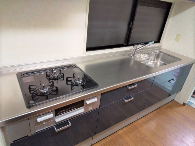 普段からキレイに使用されているキッチンでしたが、色をネイビーでシックに仕上げたいご要望を叶えることができました。