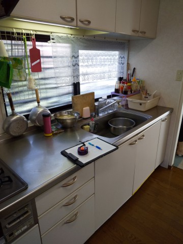 蛇口の故障と下段の棚の不具合をきっかけに、新しいキッチンに変えたいとご要望があり、LIXILのシステムキッチンをご提案しました。