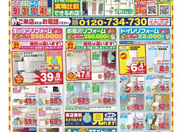 津島市・愛西市・あま市のリフォームは SHリフォームへ 皆さま、いつもご利用ありがとうございます。 2021年9月~2021年12月末迄のチラシを掲載いたします。 ========================== SHリフォーム、佐藤配管は津島市・愛西市・あま市の水まわり専門店!! 小さな修理・取り替えも喜んでお受けします!! キッチンやトイレ、お風呂に洗面台、 各種給湯器など器具の取り替えは SHリフォームにお任せください!! ========================== 対応エリア 津島市、愛西市、あま市、弥富市、蟹江町 ========================== WEBからのお見積り依頼はこちら ご来店予約でQUOカードプレゼント中! 来店予約はこちら 津島・愛西・あまのご相談・お見積りのご依頼は SHリフォームまで! お店の場所は木田駅の南側、ナフコトミダ木田店様の目の前です! お気軽にご来店ください!