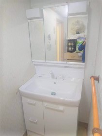 津島市|3面鏡と収納棚が増えて、洗面小物がすっきり!