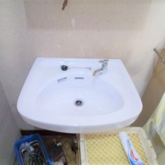 洗面器の排水トラップの修理依頼から、部品交換工事と、新規洗面器入替工事の金額を比較して頂き、洗面台の陶器の外側の表面の汚れが落ちないという事と、価格差があまりなかったので、入替工事の受注になりました。